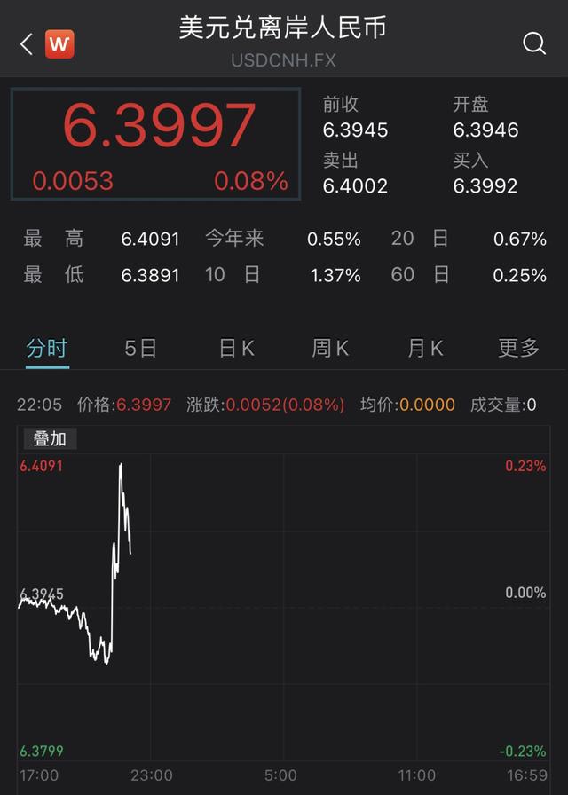 更多反映国际投资者预期的离岸人民币对美元汇率更是一度跌破6.40关口。