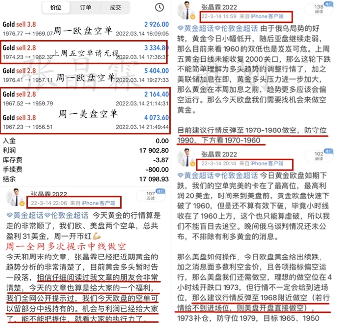 黄金昨日行情回顾:(每日文章策略和全网自媒体给出的实时策略会有一定差异,请大家做出正确的参考)对于昨日黄金的走势算是加息前的常规预期走势,我们欧盘在1978提示做空,行情也如期下破1960,空单盈利20美金,既然行情下破1960,那么美盘一定要继续反弹做空了,美盘我们提示1968做空,行情如期下破,空单盈利11美金。目前黄金空头趋势明显,昨日我们也再次全网透露了中线做空,算是给大家的福利,相信近期关注张晶霖的朋友,也知道我们上周一直在提示本周会布局中线。昨日我们一共操作2单,2但止盈,利润是31美金。面对昨日的行情,张晶霖想说的是:我们在交易中,一定要严格的分析行情趋势,及时顺应行情。当然,如果近期操作不如意的朋友也不用遗憾,黄金下一轮中线布局利润一样不会少,张晶霖等待你的参与,每日实实在在的利润空间,相信一直在关注张晶霖的朋友有目共睹,每日只提供现价单,不信翻阅自媒体历史喊单记录!