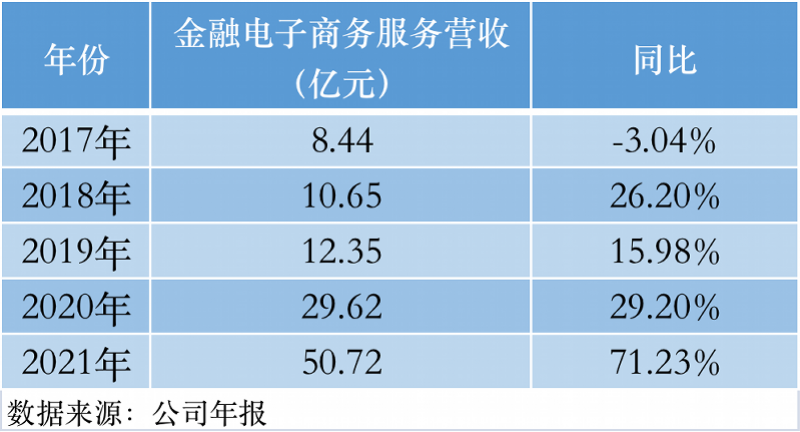 随着销售规模的增长,天天基金营业收入也同比大增71.23%。根据东方财富年报,主要通过天天基金,为用户提供基金第三方销售服务的金融电子商务服务业务,在2021年实现50.72亿元的营业收入。