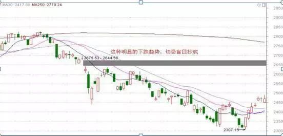 熊市行情市场处于下降趋势,均线空头排列。最好不参与,不要轻易抢反弹,应跟随趋势轻仓操作,确保不犯原则性错误。