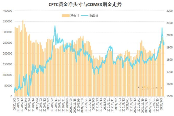 下图为2021年以来COMEX黄金期货基金持仓净头寸与期货行情的表现: