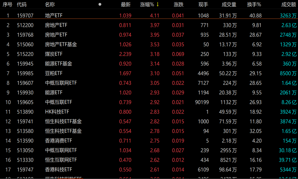 ETF收评_今日279只ETF基金“飘红”,最高大涨4.11%