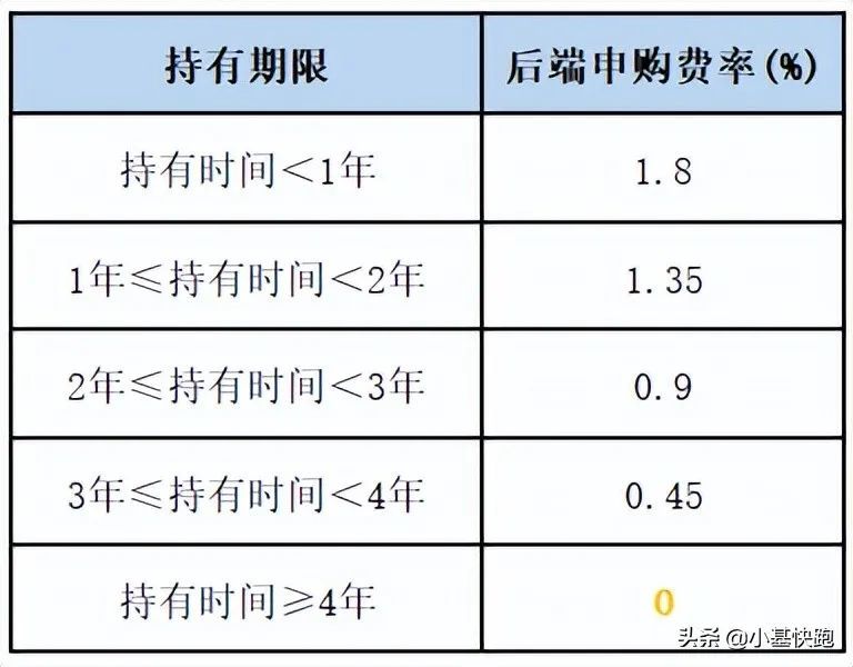 (2)如果你购买的基金是B类基金,也就是后端收费基金,申购费是在卖出基金时扣除。后端模式的基金会根据持有时间的长短来划分不同的申购费率。