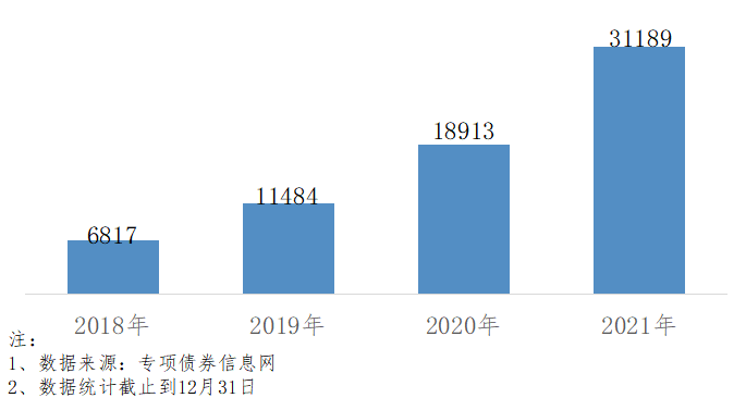 2018-2021年共发行再融资债券68404亿元,且发行规模呈现逐年递增趋势。