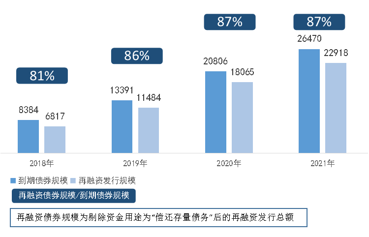 图2:2018-2021年到期债券与再融资债券发行情况(单位:亿元)