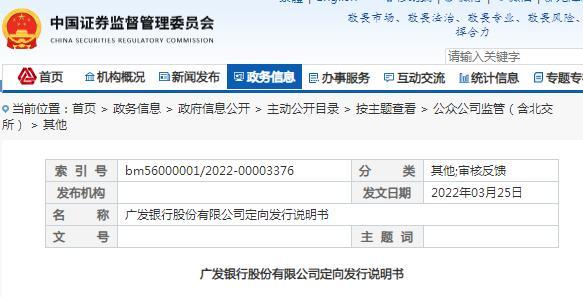 3月25日,广发银行定增说明书在证监会官网披露。广发银行拟定向发行不超过21.03亿股新,募集资金总额183.70亿元,发行价格为8.7364元/股。