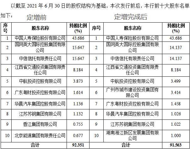 定增说明书显示,此次定增共有34名股东参与认购,其中31位在册股东认购11.06亿股,认购金额合计96.66亿元,另引入广州市城市建设投资集团、湖南湘江新区发展集团、绵阳科发长泰实业3家企业认购金额87.04亿元,值得一提的是,新引入的三家投资者均为地方国企平台。
