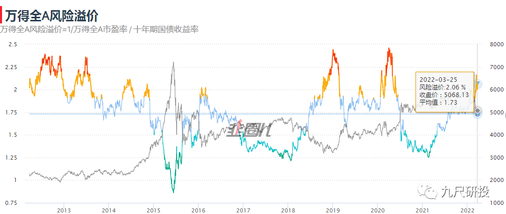 目前的市场机会大于风险。中证全指的市盈率在历史21.67%的位置,意味着历史中78%的时候都比目前的市盈率要高。股债比目前大于2,同样意味着股市的性价比更高。