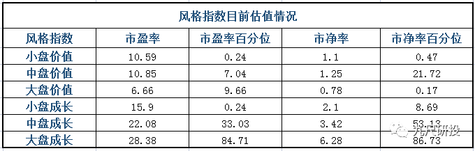 但要注意市场为结构性行情,并非全面的普涨走势。从估值上看,目前大盘成长还是属于高估状态,而大盘价值、小盘价值、小盘成长均是低估状态。