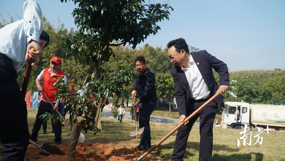 春风拂面,日光和煦。九佛街重岗村古荔枝公园义务植树现场,大家一起扶苗、培土、围堰、浇灌,涌现一派热火朝天的劳动景象。街道切实发挥党建引领作用,此次活动发动党员、志愿者、村民共同参与,共种植35棵树木,有荔枝树、玉兰、凤凰木等。