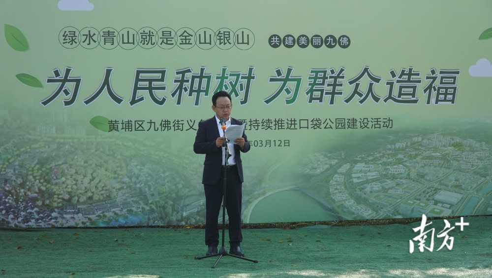 3月12日,黄埔区九佛街开展“为人民种树,为群众造福”义务植树暨持续推进口袋公园建设活动,持续推进“一心两廊·九星荟萃”规划建设,为九佛经济与生态齐飞再添新绿、再添生机。九佛街道党工委书记褚大军、主任黄庆新、水务局副局长徐国平、街道领导成员、知识城(广州)投资集团有限公司负责人、辖区村民及党员志愿者等参加本次活动。