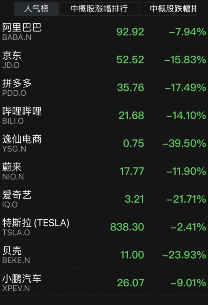 3月11日晚,下跌还在继续。出行巨头滴滴(DIDI.US)当天跌幅高达44.08%,收盘1.89美元,距离去年8月上市后的高点18.01美元跌幅已经高达90%;受刚出来的电子烟政策第二轮征求意见稿影响,知名电子烟悦客母公司雾芯科技(RLX.US)当日大跌36.32%,收盘1.49美元,距离去年2月上市后的高位35美元,跌幅更是超过95%。