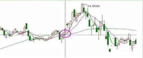 个股在大幅下调之后,反弹拉升然后出现缩量回踩,这时候如果5日均线和10日均线以及40日均线出现三线汇聚,形成金叉,出现再次上攻的迹象,那么就是大胆拿进的时候。