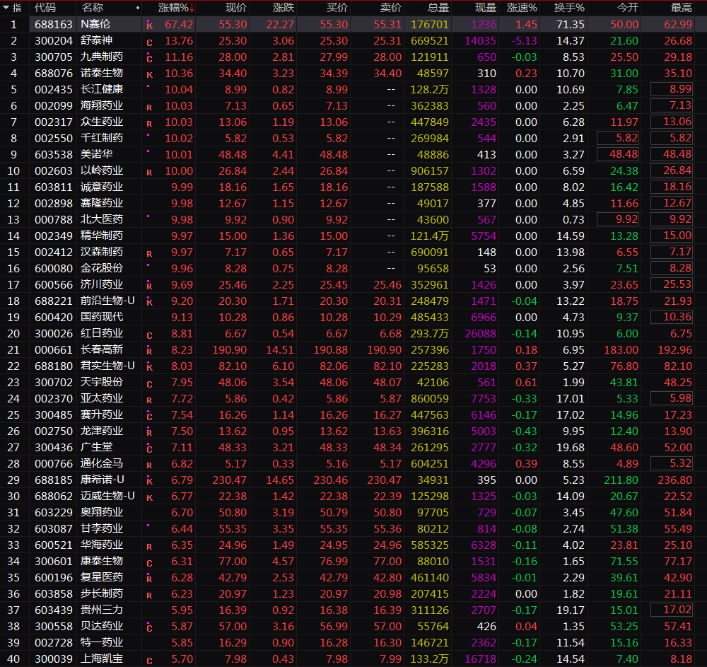 3、医药和检测概念注定走强,这是个妖股的时代:因为疫情和新冠抗原检测政策,下周这些股票再度走强是必然的。他们在上周五下午就是大举拉升,明显有人抢跑了。这些个股我们没法参与,看着就行。