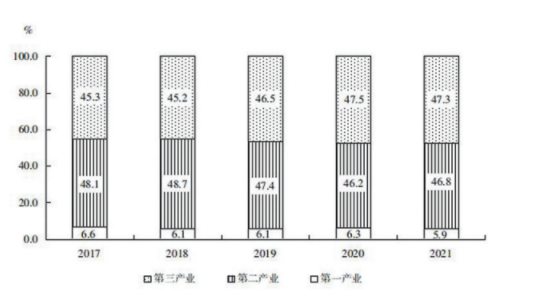 图2 2017—2021年三次产业增加值占地区生产总值比重