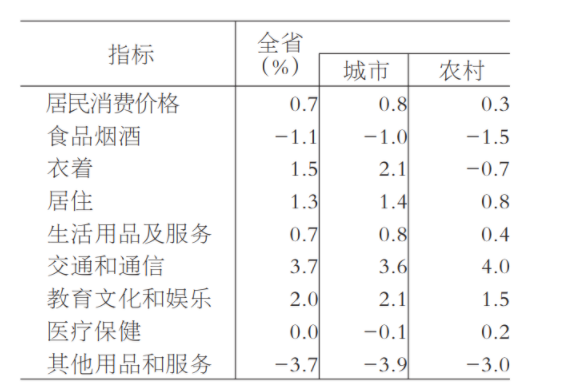 全年居民消费价格比上年上涨0.7%。工业生产者出厂价格上涨4.9%。工业生产者购进价格上涨9.2%。农产品生产者价格上涨4.5%。