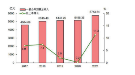 图10 2017—2021年一般公共预算总收入及其增长速度