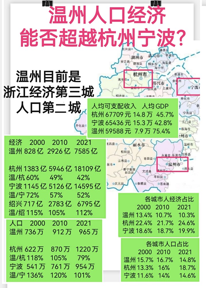 同时温州经济占比杭州的比例从20年前的60%降到42%;