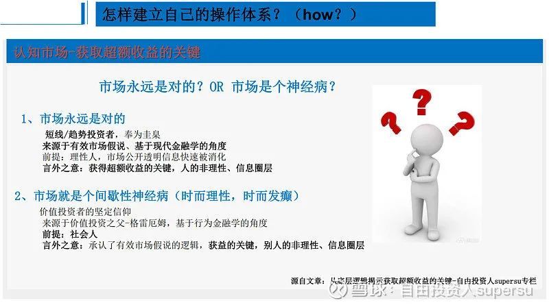 我之前在专栏有写过一个文章叫《从底层逻辑揭示获取超额收益的关键》,我自认为相当有水平,至少我想清楚这个问题花了很多时间(几年),翻了好多本书。我一再的转发之后发现,还是没有那些说公司的文章的阅读量高。并且,我是感觉好多人没太读懂,不然的话不会有些人那样的评论。文章大家可以下来再读下,我在这里就简单的说一下: