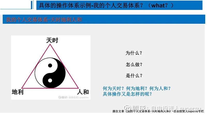 什么样的体系才是自己的操作体系呢?自己的操作体系(非巴菲特非格雷厄姆非某某大神的,他们的未必适合自己,未必自己能hold住),我觉得分为三个方面,