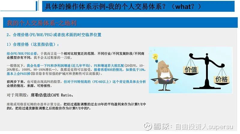 2、合理价格(PE/ROE/PEG)或者技术面的时空临界位置