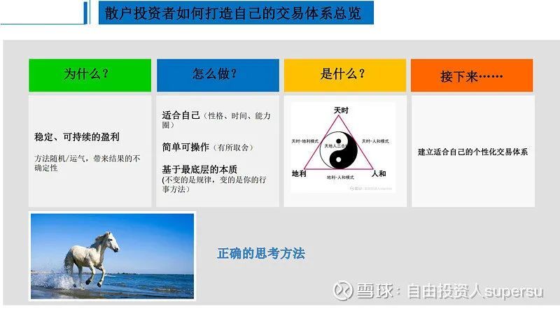 接下来,怎么做?我们得诚实得认知自己,找到适合自己的能力、性格、时间的,操作体系要简单可操作(别搞得过于复杂),最关键的是要基于牢固的底层逻辑(客观规律)。