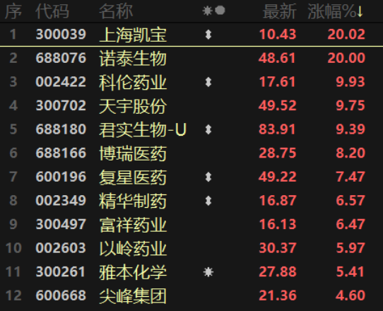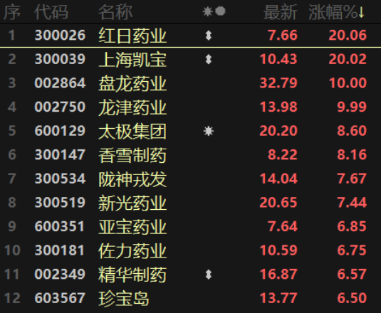 另外中药板块同样涨势强劲,红日药业20%涨停,盘龙药业、龙津药业涨停。
