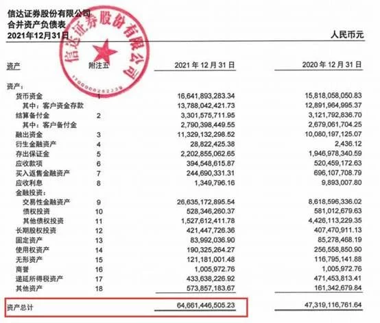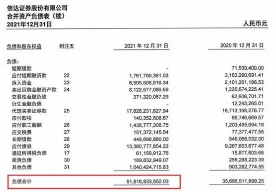 截至2021年末,信达证券资产总计646.61亿元,负债合计518.19亿元。