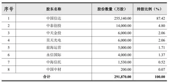 2021年年报显示,公司共有8家股东,分别为中国信达、中泰创投、中天金投、昊天光电、前海运营、永信国际、中海信托和中国中材。