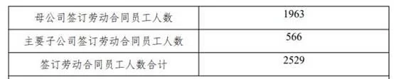 截至2021年12月31日,母公司签订劳动合同员工共计1963人,主要子公司签订劳动合同员工共计566人,签订劳动合同员工人数合计2529人。